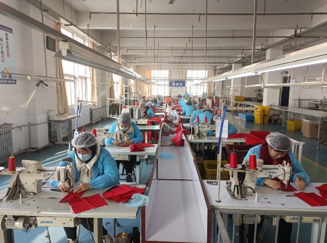 七只羊服飾創(chuàng)立于1995年,是一家集羊毛防寒服研發(fā)、設(shè)計(jì)生產(chǎn)、銷售、售后服務(wù)于一體的高新技術(shù)企業(yè)。最近氣溫持續(xù)走低,保暖性好又柔軟舒適的羊絨衫、戶外御寒性十足的防寒服銷量持續(xù)走高,走進(jìn)榆林高新區(qū)七只羊服飾加工車間,工人們正在縫紉機(jī)前飛針走線,旁邊是一筐筐待加工的原材料,整個車間呈現(xiàn)一派繁忙的生產(chǎn)景象。
